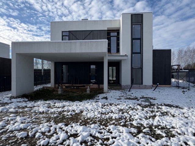 Коттедж построен по индивидуальному проекту. Дом новый, красивый и современный, высокие потолки, панорамные окна, продуманная планировка.