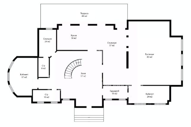1 этаж: каминный зал, кухня,столовая, кабинет, закрытая веранда, выход в сад и на детскую площадку.