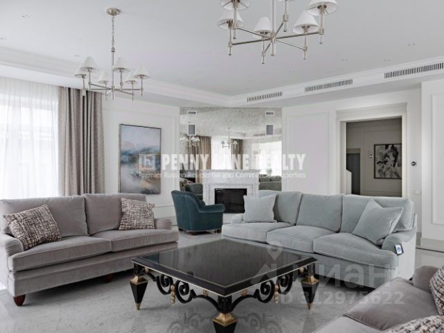 Дом 976 кв.м приватно расположен на ухоженном и утопающем в зелени участке 47 соток, примыкающем к парковой территории элитного коттеджного поселка Монтевиль в 23 км от МКАД по Новорижскому шоссе.
