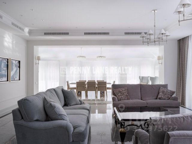 Диваны и кресла в гостиной Duresta (Англия). В столовой каменный раздвижной стол Draenert (Бельгия). В спальнях кровати Treca (Франция), диваны Meridiani. Гардеробы Rimadesio и Bernazzoli (Италия).