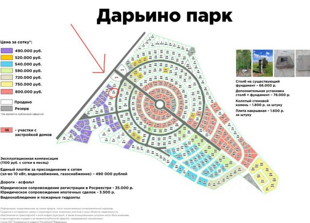 Дарьино Парк 9 соток. Сделана геологические изыскания участка почвы. С этими документами вы сможете правильно рассчитать фундамент дома. С продажей участка, прилагается договор на подключение коммуникаций (свет, вода, газ). Стоимость около -350 т.р. Стоимость данного участка на сегодняшний день у застройщика 4 500 000 руб, если со всеми платежами, договорами и гос пошлинами около 5 млн. 4,1 млн. -если оплата будет с ИП, ООО, Ипотека. 4,3 млн-наличные Кадастровый номер 50:08:0040361:428