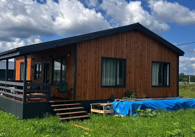 Жилой дом площадью 120 м² расположен на участке 6,1 соток, полностью огорожен забором с индивидуальным въездом и входом. Асфальтированный подъезд к дому. Дом уютный и теплый, построен из экологически чистого пеноблока с высокой тепло- и шумоизоляцией, а также огне- и морозостойкий. Фундамент — монолитная плита, крыша выполнена из ондулина, снаружи обшита сайдингом, внутри — имитация бруса.