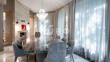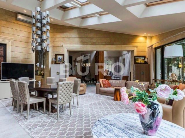 На обширном участке площадью 66 соток расположены четыре постройки общей площадью 865 кв.м., каждая из которых воплощает высочайший уровень качества строительства и изысканный вкус владельцев. Основной дом площадью 597 м2 впечатляет своими просторными объемами и продуманностью пространства. Отделка выполнена в спокойных нейтральных тонах с применением премиальных натуральных материалов. Высокие потолки и большая площадь остекления наполняют интерьер естественным светом и создают ощущение единства с окружающей природой, открывая живописный вид на лес. Внутри располагаются 5 уютных спален, 5 санузлов, отдельная полноценная квартира с отдельным входом, что позволяет обеспечить комфорт и удобство проживания. Особое внимание уделено зоне отдыха и релаксации: пространство SPA включает сауну, хамам, глубокую купель, спортзал и детскую игровую зону. Отделка фасада выполнена полнотельным кирпичом светлых оттенков, подчеркивая утонченность архитектуры. Крыша покрыта благородным сланцевым материалом, дополненным эстетичной медной водосточной системой с эффективной системой антиобледенения. Современные системы вентиляции, кондиционирования воздуха и центральные коммуникации обеспечивают комфортные условия круглогодичного проживания. Гараж на три автомобиля площадью 147 м2 оснащен подземным уровнем для удобного хранения. Сигарный домик площадью 121 м2 вмещает просторную кальянную, кабинет и санузел. Также на участке располагается Беседка 43 м2 в черновой отделке и домик для персонала. Просторное зеленое пространство с декоративными растениями и удобными дорожками приглашает прогуляться и насладиться гармонией природы и прекрасными видами собственного леса. Sherwood — это камерный лесной поселок от Villagio Estate, расположенный всего в 26 км от МКАД по Новорижскому шоссе. В непосредственной близости находится широкая инфраструктура, включая магазины, рестораны и развлекательные заведения, что делает жизнь в Sherwood комфортной и разнообразной. Этот объект представляет собой идеальное сочетание приватности, стиля и функциональности, создавая атмосферу истинного уюта и высокого уровня жизни. Номер лота: 4999