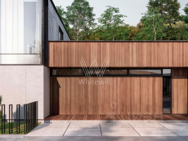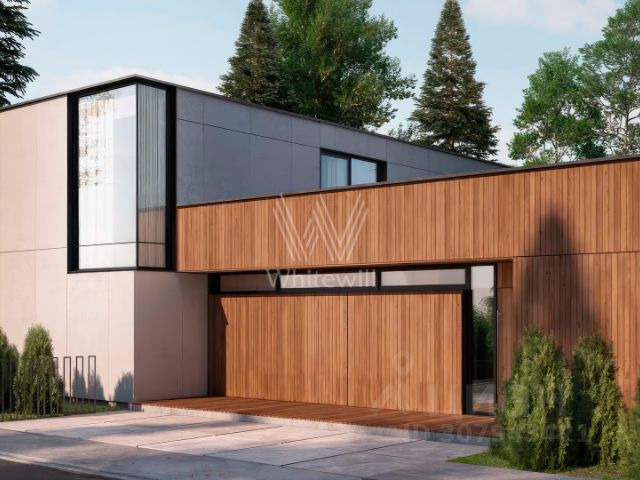 В доме по проекту кухня-столовая, большая гостиная с выходом на террасу, гостевая (кабинет), гардеробная- прачечная, холл, 5 санузлов, постирочная, гостевая квартира. Отапливаемый гараж на 2 машины, современное инженерное оборудование. Высота потолков 4,5 м.