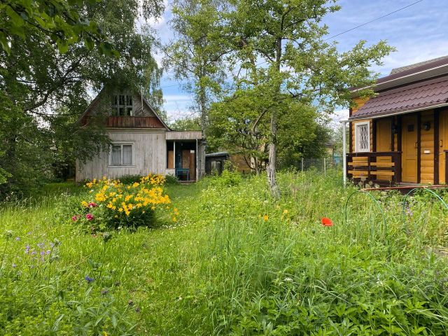 Продается дача на участке 6 соток с множеством редких хвойных, декоративных и плодовых растений. Фундамент дома глубокий ж\б плиты 6х9: 6х6 кирпичный, терраса 3х6 деревянная, 2 этажа, перекрытия-плиты. Терраса обита сайдингом, утеплен пол и стены. В доме на первом этаже 3 комнаты. Большая 4х6 с камином, санузел 2х3 (туалет, душ, водонагреватель). гардеробная 3х2 (можно убрать полки и сделать спальню). На террасе зона для кухни и столовой, подведена горячая вода. Канализация септик. На втором этаже терраса 3х6 с большим окном и одно большое помещение 6х6 (ставили теннисный стол, спортивные снаряды), крыша без внутренней отделки, пол покрашен. Дом хорошо держит тепло ночью и прохладу в жару. С мая по сентябрь обогрев не требуется. Зимой не жили, но нам не комфортно. Но, для камина поставили хорошую трубу 180/250, с внутренней теплоизоляцией,высотой 5,5м, прекрасно подойдет для установки печки для обогрева всего дома.Окна пластиковые. Камин дровяной. На участке есть сарай на бетонном фундаменте 3х6, внутри без отделки. Между домом и сараем очень удобный, высокий металлический навес 5х7. Крыша - бронзовый поликарбонат. Есть раковина с подводом воды. Под сараем и навесом врыты бетонные кольца для слива воды.Участок полностью закрыт от соседей (очень хороших). Перед зоной отдыха большой искусственный пруд с террасами из специальной пленки для водоемов. Примерно 3,5х4 кв.м. Глубина 1,5м. Прилагается хороший фильтр и насос. Можно купаться или разводить рыбу. В саду коллекция карликовых сосен, елей, можжевельников, в т.ч. на штамбах, много хост, ирисов, пионов, лилий, гортензий, сирени. Розы остались только корнесобственные. 4 большие лесные сосны, яблони, смородина, малина, орешник, груши, жимолость. Вокруг растений почти везде агроспан, покрытый щепой, но за 2 года отсутствия требуется капитальная прополка, обрезка роз.за 10 тыс.вам прополят и покосят за 1 день.