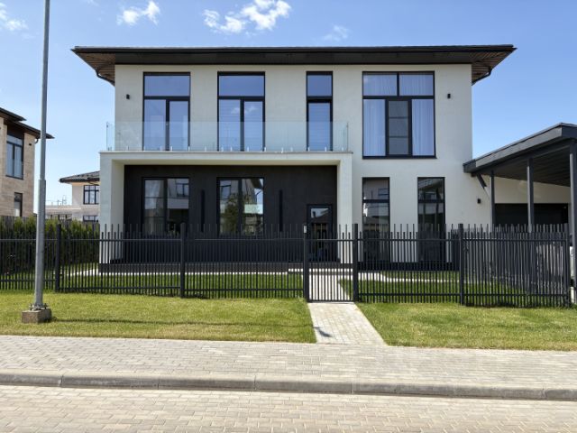 Стильный новый дом под ключ! 333 кв.м в духе архитектуры хай-тек в коттеджном поселке премиум класса Райт Вилладж. Дом с несущим монолитным каркасом, заполненным кирпичом, панорамным остеклением, высокими потолками готов к заселению: отделан элитными материалами, обставлен европейской мебелью. Функциональная планировка включает в себя: единое пространство кухня-столовая-гостиная, 5 спален, одна из которых на 1-м этаже, 5 санузлов, террасы. Установлен биокамин, сделано качественное трековое и встроенное освещение. Участок 16 соток с ландшафтным дизайном, плодовыми и декоративными деревьями, большой солнечной поляной. Элитный коттеджный посёлок, выстроенный в едином стиле, со всеми центральными коммуникациями, строгой охраной, инфраструктурой городского типа и великолепными природными пейзажами. В поселке открыт ресторан ПРЕРИЯ, супермаркет, аптека, есть прогулочные зоны с водоемом и фонтанами, спортивные площадки, в ближайшее время будет открыт детский сад Stay and Play. В поселке началось строительство большого спортивного комплекса (фитнес клуб с бассейном, площадки для футбола/баскетбола, пляжного волейбола, катка)