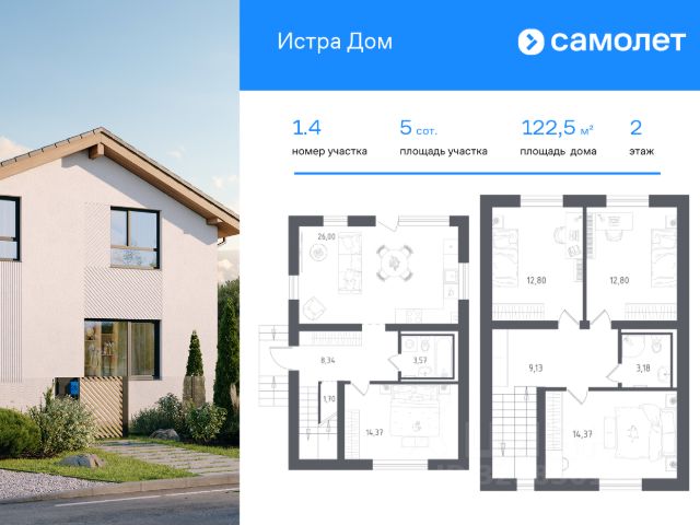 В продаже дом площадью 122,5 м2 на участке 5.01 от застройщика "Самолет" в загородном проекте "Истра Дом". Функциональная планировка, большие окна и высокие потолки. Дом без отделки. В базовую комплектацию включена металлическая входная дверь, двухкамерные стеклопакеты. Отсутствие межкомнатных перегородок позволит вам адаптировать пространство под себя. Все коммуникации заведены в дом: электричество, газ, канализация, водопровод и интернет. Участок благоустроен: газон, забор по периметру с калиткой и откатными воротами, подготовленное парковочное место для автомобиля. Предусмотрена ливневая канализация (ливневка), что защитит участок от подтоплений. Вы ощутите комфорт жизни в собственном доме и удобство городской инфраструктуры в окружении живописных пейзажей. На территории Истра Дом расположены: Административное здание (УК) Торговый центр и магазины Банно-оздоровительный комплекс Досуговый и детский центры Коворкинг Школа и детские сады Поликлиника Спортивный центр Игровые и спортивные площадки для взрослых и детей Водоем с собственной живописной набережной Круглосуточная охрана и видеонаблюдение Расположение: 60 минут до МКАД на автомобиле по Новорижскому шоссе 1 час 40 минут до Москвы на общественном транспорте 15 минут на автомобиле до Истринского водохранилища 10 минут на автомобиле до ж/д вокзала "Румянцево" Покупка по 214-ФЗ по ДДУ, что гарантирует надежность и прозрачность сделки. Выгодные варианты покупки: 1. Семейная ипотека от 5,9%, ПВ от 20,1% 2. Рассрочка на 2 года с первым взносом от 15%. Приглашаем Вас в офис продаж на презентацию проекта ежедневно с 10.00 до 20.00.