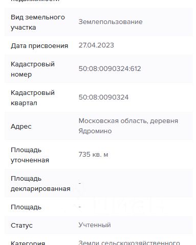 ! ПРОДАЮ ЗЕМЕЛЬНЫЙ УЧАСТОК 7 СОТОК ! ! ЕСТЬ УЧАСТКИ РАЗНОЙ ПЛОЩАДИ ! Расположение: Истринский район, 55 км от МКАД Направление: Новорижское, Волоколамское шоссе Участок ровный и сухой - под строительство дома и инвестиций! Идеально для постоянного проживания и загородного отдыха! - ИЖС - ПРОПИСКА - БЕЗ ВЗНОСОВ И ПЛАТЕЖЕЙ - РАССРОЧКА ОТ КОМПАНИИ (СОБСТВЕННИКА) О ПОСЁЛКЕ: Посёлок находится по соседству с деревнями Ядромино, Рубцово и посёлком Курсаково. - Внутри посёлка построены дороги с твердым покрытием - Электричество (прямой договор с ПАО Россети) - Тростенское озеро отличное место для купания и рыбалки - Лес с грибами и ягодами - Развитая инфраструктура всё под рукой! - Общественная зона для отдыха (беседка и воркаут для занятия спортом) В пешей доступности необходимая инфраструктура: детский сад, школа, библиотека, магазины, торговый центр, фельдшерско-медицинский пункт, центр зимних видов спорта Истина, дом отдыха Румянцево, АЗС, строительный рынок, кафе, железнодорожная станция. Живописное окружение гармония с природой каждый день! Удобное транспортное сообщение: с Рижского вокзала электричкой до ж/д станции Курсаково, далее на автобусах 35, 24/41 до остановки Ядромино (остановка в пешей доступности). ОПЕРАТИВНЫЙ ПОКАЗ В УДОБНОЕ ДЛЯ ВАС ВРЕМЯ! Остались вопросы? НАПИШИТЕ свой номер телефона и ПОЛУЧИТЕ на WhаtsАрр генплан с ценами на участки и информацию о посёлке. Возможно вы искали: купить земельный участок, купить землю, дачный участок, ижс, участок ижс, ижс купить, купить дачный участок, коттеджные посёлки, коттеджный посёлок, новорижское шоссе, земельный участок, купить ижс, участки новая рига, участки новорижское шоссе, участки волоколамское шоссе, волоколамка, новая рига, участки ижс, купить землю, участок в коттеджном посёлке, участок 4 сотки, участок 5 соток, участок 6 соток, участок 7 соток, участок 8 соток, участок 9 соток, участок 10 соток.