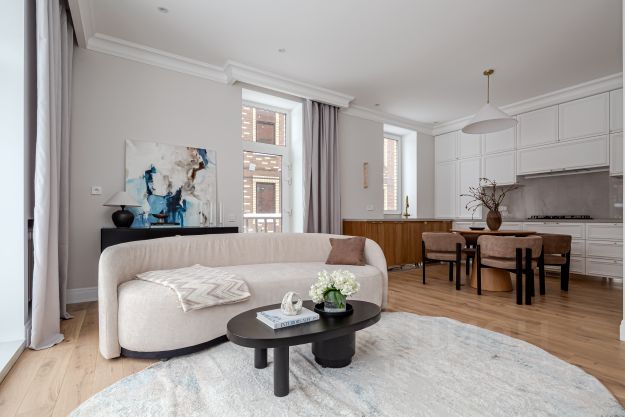 ID 9889. Загородный таунхаус с террасой и современной отделкой в КП "Кембридж". Просторный трёхэтажный таунхаус площадью 150 кв.м. укомплектован всей необходимой мебелью, техникой и полностью готов к комфортному проживанию. Отделочные работы выполнены премиальными материалами класса Deluxe, преобладают мягкие природные оттенки и натуральные материалы, создающие уютную и расслабляющую атмосферу. Большая площадь остекления наполняет пространство естественным светом и теплом. Продуманная планировка обеспечит комфортное проживание каждому члену семьи: Первый этаж: просторная кухня-гостиная с выходом на террасу, удобная прихожая и гостевой санузел. Второй этаж: две светлые спальни, одна из которых оборудована удобной гардеробной, отдельная ванная комната. Третий этаж: спальный блок с собственным санузлом и кладовой комнатой. Перед домом предусмотрена парковочная зона на два автомобиля. Общая площадь участка - 2,4 сотки, приватный внутренний двор станет прекрасным местом расслабления и отдыха. Коттеджный посёлок расположен в 22 километрах от Москвы в престижном Истринском районе Подмосковья. На территории есть всё необходимое для круглогодичного проживания: заканчивается строительство общеобразовательной школы, работает детский сад "Маленькая Англия". Присутствуют службы бытовых услуг, салон красоты&SPA, фитнес, аптека, универсам и семейное кафе. Построены многочисленные спортивные объекты, предусмотрены парковые зоны. "КЕМБРИДЖ" — это сочетание преимуществ загородной жизни и городского комфорта.