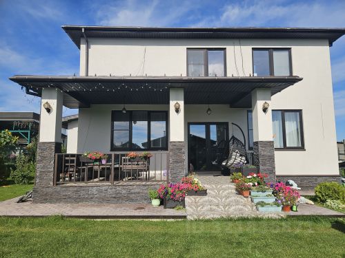Двухэтажный дом из газобетонных блоков, стены и крыша утеплены. Утеплённый ленточный фундамент с монолитной плитой и отмостками. Кровля мягкая черепица. Мощная вытяжка и вентиляция. На 1 этаже-тёплый водяной пол. В котельной два котла, оба Протерм (Чехия), напольный газовый и электрический настенный запасной, бойлер на 200 л. Подключена система удалённого управления отопительной системой ZONT. В доме 4 спальни. Санузлы (7 и 8 кв.м) на обоих этажах полностью готовы, в каждом душ с трапом, сантехника Grohe и Roca. Натяжные потолки, светодиодное освещение. Лестница в доме, терраса (40 кв.м) и крыльцо (6 кв.м) - из лиственницы. Вместе с террасой и крыльцом площадь дома - 221 кв.м. Роутеры на двух этажах, подключен интернет (Истранет), разведена слаботочка, Smart TV. 4 видеокамеры по периметру дома с удалённым онлайн просмотром. Столешница кухни из иск. камня. Встроенная техника Bosch. Смеситель, мойка, фильтр с обратным осмосом, посудомойка и газ подключены, всё работает.