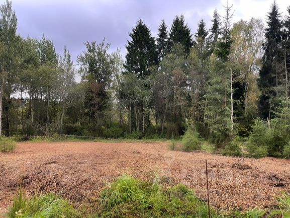 Полностью лесной участок. Огорожен, подведено электричество, стройки вокруг участка нет