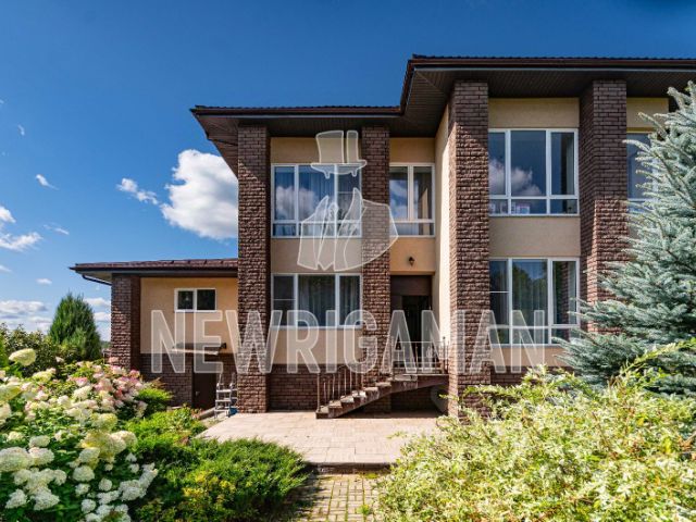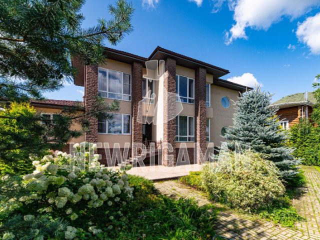 Современное домовладение общей площадью 1008 кв.м на живописном зеленом участке 32 сотки в 23 км от МКАД по Ильинскому шоссе в охраняемом КП Европа-1. Сам поселок утопает в зелени и находится в окружении огромного хвойного лесного массива со статусом особо охраняемая территория площадью 744 Га.