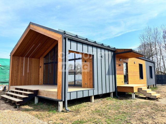 Из дома на 1 этаже имеется 2 выхода. Главный вход имеет крыльцо с навесом.