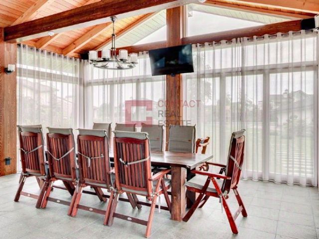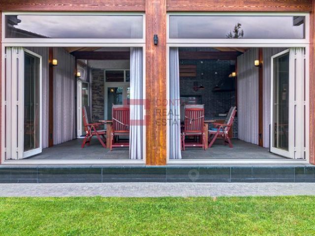 Жилой, сруб, натуральный камень, панорамные окна, терраса, балкон