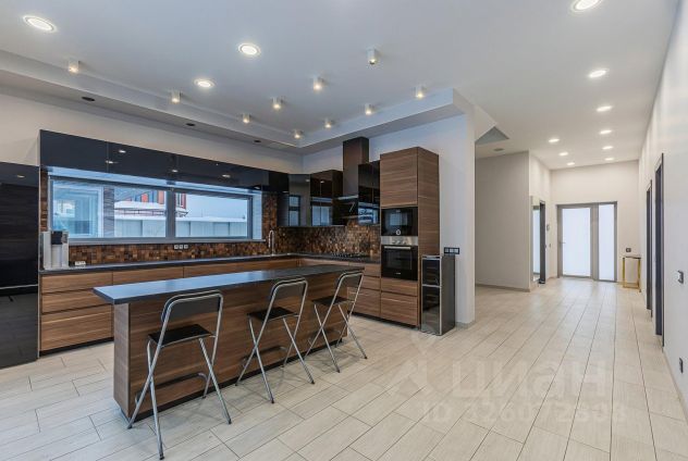 Открытое пространство гостиной, совмещенное с кухней (можно изолировать), площадью 120 кв.м с выходом из гостиной на террасу и выходом из кухни на участок. Дополнительно 6 изолированных комнат (из которых 3 мастер-спальни с санузлами), 6 санузлов.