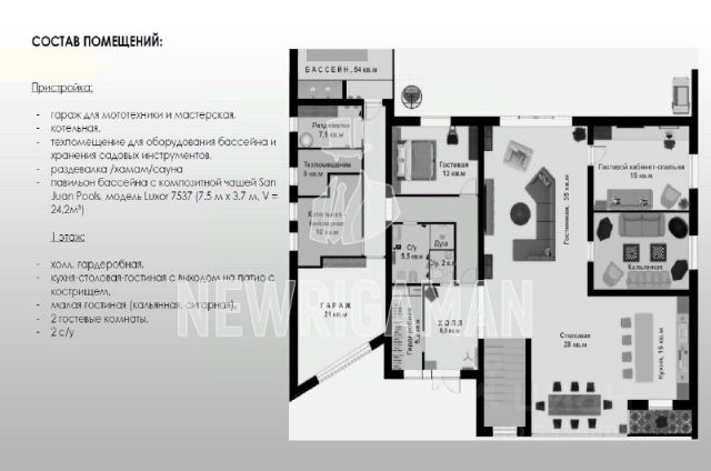 Арт. 118028530 Вашему вниманию представлен полностью готовый дом 278 кв.м в КП "Новорижский", расположенный в 27 км от МКАД по Новорижскому шоссе. Отделка выполнена по индивидуальному проекту. Интерьер продуман до мелочей. Эксклюзивные дизайнерские решения придают уникальность внутреннему пространству дома. Ремонт делали для себя, готов полностью для постоянного проживания, есть вcя необходимая встроенная техника и мебель. В доме 4 спальни, одна из которых расположена на первом этаже. Из гостиной можно выйти на уютную террасу, где можно проводить время всей семьей теплыми летними вечерами. Все коммуникации центральные: газоснабжение, электричество, водопровод, канализация. Организована котельная, установлено дорогостоящее оборудование и система кондиционирования. По дому разведен теплый пол. К дому пристроен навес для двух автомобилей. На участке сделан дренаж, ландшафтный дизайн. Высажены декоративные кустарники и растения. По периметру участка посажены туи. Установлено вечернее освещение. Планировка: Первый этаж: прихожая, котельная, спальня, гардеробная, санузел с душевой, кухня-гостиная-столовая с выходом на террасу Второй этаж: мастер-спальня с гардеробной и санузел с душевой, спальня, санузел с ванной, спальня Коттеджный поселок Новорижский находится в 27 км от МКАД по Новорижскому шоссе в окружении лесного массива. В "Новорижском" можно купить новые дома, выполненные под ключ или под отделку, дома из бруса, натурального кирпича или газосиликатных блоков, которые расположены у озера, канала или рядом с парком. А также участок и построить дом по своему индивидуальному проекту. Территория поселка полностью огорожена, организовано несколько въездом, что создает каждому жителю комфортный доступ к своему дому. Дороги асфальтированы, сделаны широкие бульвары, установлено освещение, осуществляется круглосуточное патрулирование территории. Все коммуникации центральные: газоснабжение, электричество, канализация и водопровод. В поселке созданы водные каналы и благоустроены три парковые зоны с озерами. У одного из озер создан пляж для купания. Продуманное расположение детских и спортивных площадок дает возможность комфортно проводить время как совсем маленьким детям, так и подросткам. Для детей также построены частные сады: "Baby Teddy", "Дивный Сад", "Casa Dei Bambini XXL", "Binny" и школы: "Покровская гимназия", "Новорижская школа", "Junior School", "Лицей", "Академия Знаний". К внешней высокоразвитой инфраструктуре относятся близко расположенные торговые и спортивно-развлекательные центры с бассейнами и СПА-комплексами: Novaya Riga Outlet Village, ТЦ Pokrovsky, клуб-ресторан Ribambelle Village, Agalarov Golf & Country Club расположены всего в 35 минутах на машине. В пешей доступности находится продуктовый магазин со всеми товарами первой необходимости. Удобное расположение поселка обеспечивает мобильность его жителеи. Прямои выезд на скоростное Новорижское шоссе позволяет максимально быстро добраться до Москвы. Время в пути займет 20 минут. Если вы цените жизнь на природе и городской комфорт, то это лучшее место для проживания и отдыха. LETO Estate подберет для Вас идеальный вариант загородной жизни. Получите полный каталог всех предложений в коттеджном поселке Новорижский.