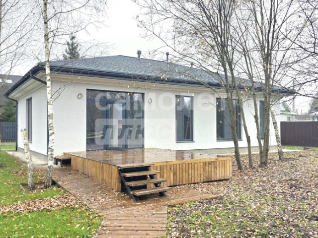 Одноэтажный коттедж для постоянного проживания в коттеджном посёлке бизнес класса Счастье, в окружении леса. Круглосуточная охрана, видеонаблюдение, пешеходные зоны, собственный выход в лес, все это позволит с комфортом и в безопасности проживать в этом современном доме.