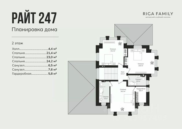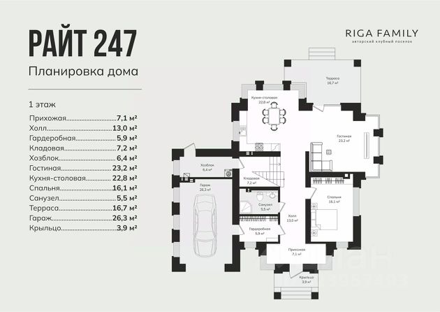 В продаже стильный двухэтажный коттедж 247м2 с террасой 16,7м2 и гаражом 26,3м2. Коттедж под отделку со свободной планировкой, расположен на участке возле леса в авторском клубном поселке бизнес-класса RIGA FAMILY.