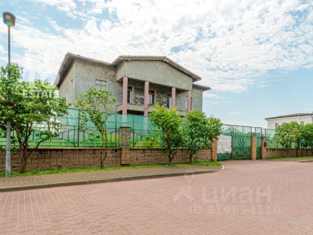 Дом построен в классическом стиле. Фасад дома без отделки, внутри проведены работы по выравниванию стен, электричество разведено по всему дому, включая цоколь. Дом отапливается. Организован подогрев террас. Фундамент монолитная плита, стены кирпичные, лестница монолитная. Возможно установить лифт. Цоколь сухой, по периметру дома проведены работы по водоотведению воды от дома в ливневую канализацию поселка. Есть проектная и рабочая документации по внутренним строительным работам. Дома с обеих сторон заселены, строительные работы не ведутся.