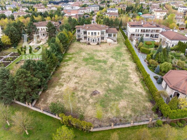 Участок, площадью 55 соток, прямоугольной формы. На участке проведены ландшафтные работы, выстелен газон, есть выход в парк. По периметру дома проведены дренажные работы. Все коммуникации центральные газ, водоснабжение, электричество, канализация, в т.ч. ливневая.