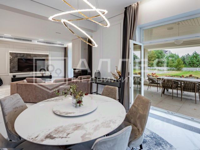 Первый этаж: гараж на 3 автомобиля и снегоход, каминный зал (60 кв.м) со вторым светом и выходом на веранду, кинозал (30 кв.м.), кухня (20 кв.м), столовая (50 кв.м.) с выходом на веранду, кабинет.