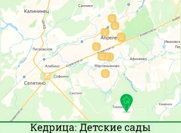 Ниже ЦИАН описывает, что действующая Школа и сад находится на расстоянии 1,4 км и пешком до неё 18 минут.