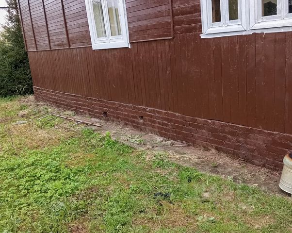 Утепленный домик состоит из кирпичной части в 1 кирпич и каркасной 10 см, снаружи все утеплено до 15 см утеплителем и отделано сайдингом. Пол утеплен керамзитом и мин ватой 15см , потолок утеплен 15 см минеральной ваты. Крыша, основная часть из оцинкованного толстого листа, малая пристройка ондулин. Внутри прихожая, туалет (рабочий), душ (на стадии 60% готовности), сауна на два места (в проекте, есть электрическая печь для бани), стиральная машина. В следующем помещении расположена кухня, печь Булерьян, раковина, подведена вода. Последнее помещение спальня (кровать, мебельные шкафы, стол, телевизор). Здесь же вход в подвальное помещение (16 кв.м) высота 130 см.