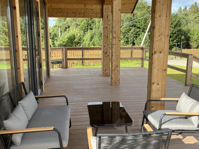 Он очень светлый и просторный, сочетает современные технологии, функциональный подход и комфортную среду для отдыха и созерцания. Благодаря витражным окнам и раздвижным стенам можно наслаждаться лесным пейзажем за окном в разное время дня — на рассвете или на закате. Яркий утренний или мягкий вечерний свет создаёт в интерьере особую атмосферу, а само пространство дарит ощущение воздушности и свободы.