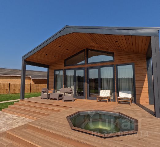Новый современный дом, построенный из качественных материалов, под ключ с мебелью. Дом расположен на приозёрном участке площадью 12,5 соток. Из гостиной и спален открывается вид на лес и речку. Продуманная планировка включает 4 спальни и кабинет. Дом оснащён всеми коммуникациями, отопление — газовое.