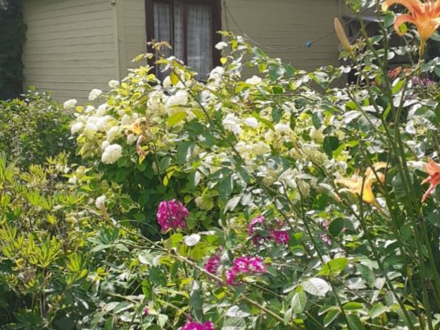 Участок правильной прямоугольной формы, сухой, весь в цветах и декоративных растениях. Растут сортовые многолетние розы, лилии, флоксы, хоста, климатисы, лилейнки, жасмин и др. Также растут сортовые плодовые деревья: яблони, груши, сливы и плодово-ягодные сортовые кустарники: смородина, жимолость, малина, клубника и др. Все ухожено и прекрасно плодоносит.