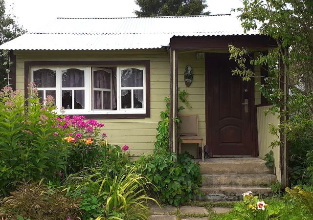 Второй дом утепленный (обитый снаружи фасадной доской, изнутри обит евро вагонкой) состоит из 2 комнат по 10 метров каждая.