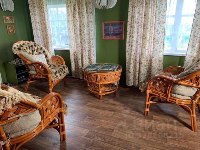 Дом из бруса с верандой, размер 9х8 м, обшит вагонкой внутри и снаружи, крыша из ондулина. Фундамент из больших блоков, перекрытия бетонные плиты на 1 этаже. В доме одна большая комната с настоящей русской печкой, и 3 спаленки на втором этаже в мансарде. Печка капитальная, стоит на своем фундаменте, примерно 160х200 см, рабочая, отапливает, держит тепло, печет пироги. Не дымит, ухоженная, любимая. На веранде расположена кухня с газовой плитой и горячей водой, слив идет в септик. Тут же небольшой подпол, бетонированный, сейчас не используется. На участке есть новая современная баня 31 кв.м, утепленная, с парилкой, душем и предбанником. Наверху в бане одна жилая комната. Крыша металлочерепица. Рядом с домом кирпичный гараж 21 кв.м. Вода из скважины, недавно оборудована современной системой очистки и деминерализации, проведена в дом и в баню. На участке септик, туалет на улице. Вокруг дома много плодоносящих яблонь, есть небольшой прудик с каменным ручейком. В углу группа разных хвойников, все взрослые красивые по 4-5 м, везде много цветов. Участок ухоженный, без мусора, есть дорожки, цветы и деревья. Весь огорожен забором, по фасаду это металлический профиль, по периметру рабица. Удобно жить с маленькими детьми или с собаками, без взрослых не уйдут. Проезд на авто круглогодичный, от асфальта идет щебёнка с песком до самого дома. Дорогу всегда чистят, т.к это хорошая деревня. Соседние дома стоят далеко, никто не шумит под боком и через забор не заглядывает. Это тихое место, сбоку от основной линии деревни. При необходимости можно доехать и на автобусе от ж/д ст. Уваровка, от остановки 800 м по тропинке через лес, или 2 км по дороге. Деревня стоит на высоком берегу небольшой речки, за полем огромный лес с грибами, вековые деревья, кабанчики и черника. За речкой молочная ферма, больше никаких предприятий нет, тишина и природа. Дом использовался как сезонная дача, с ранней весны и до снега. Стены хорошо держат тепло, а летом в нем прохладно. Можно немного доработать, чтобы жить весь год. Продаем как есть, со всей мебелью, техникой, посудой, всем, что нужно для жизни на даче. Один собственник, все изменения согласованы, документы готовы к продаже. Показы возможны с апреля, пишите, договоримся. Если нужно, по вашему запросу сниму свежее видео. Продаем без торга, напрямую новым владельцам.