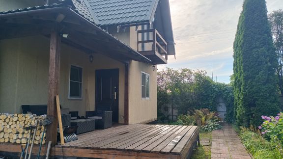 Предлагаю Вашему вниманию Дом с участком, деревня Захарьино, КП Захарьино-2, в районе г. Можайск, вблизи пос. Шаликово, в 84 км от МКАД по Минскому, Можайскому или Киевскому шоссе Дом 115 кв.м, баня-бочка 11 кв.м, участок 8 соток, дом для круглогодичного проживания. Дом с террасой 115 кв.м, 1 этаж, материал: клееный брус размер 225х155, перекрытия деревянные, фундамент: лента+плита ЖБ, окна пвх, кровля мягкая черепица; наружная отделка - покраска, коммуникации разведены по дому; отопление электрическое+воздушное, электрические конвекторы, вода-скважина, водоподготовка, канализация-септик Топаз. Планировка: 1-й этаж - котельная (тех помещение), туалетная комната, кухня-гостиная-28 кв.м, четыре спальни по 11 кв.м, ванная комната, открытая терасса-23 кв.м. Участок 8 соток / ДНП / коттеджный поселок. На участке хвойные и садовые деревья, кустарники, газон, дорожки, стоянка, участок огорожен. Другие строения: Баня- бочка из кедра 11 кв.м; хоз. постройка (для хранения инструмента и вещей); парник, зона барбекю. Коммуникации - все подключены; электричество 15 кВт (сельский тариф), три фазы; газ в перспективе, вода-скважина (60 м); септик-Топаз; интернет (оптик волокно). Подъездная дорога: асфальт, круглогодичный подъезд. Безопасность - охрана, пропускная система, охраняемый коттеджный поселок. Окружающая местность: Природа - рядом лес, Можайское водохранилище в 20 минутах езды, река Москва в 5 км. Рядом развитая инфраструктура: Солидное окружение, соседи построились. Общественный транспорт - ж/д станция Шаликово в 15 минут пешком, автобус, маршрутка от Захарьино, остановка в 400 м. Поселок тихий и спокойный, много постоянно проживающих. Цена: 10 750 000 рублей.