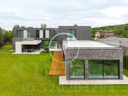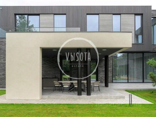 На участке — отдельно стоящий гараж на 6 машиномест, помещение охраны, хозяйственный блок и квартира для персонала. Простор позволяет разместить террасы, зоны барбекю, бассейн и прогулочные маршруты. Ландшафт выполнен с учётом приватности и видов на зелёный массив.