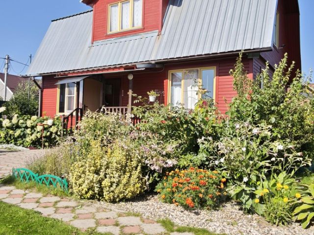 На участке высажены несколько кустов смородины, крыжовник, барбарис, несколько яблоневых, сливовых деревьев, растет клубника и жимолость. Напротив дома расположен вместительный хозблок и уличный туалет. Территория ухожена, есть беседка для детей, песочница, батут, соседи только с двух сторон. В деревне работают два продуктовых магазина, пункт выдачи товаров Озон, организована доставка