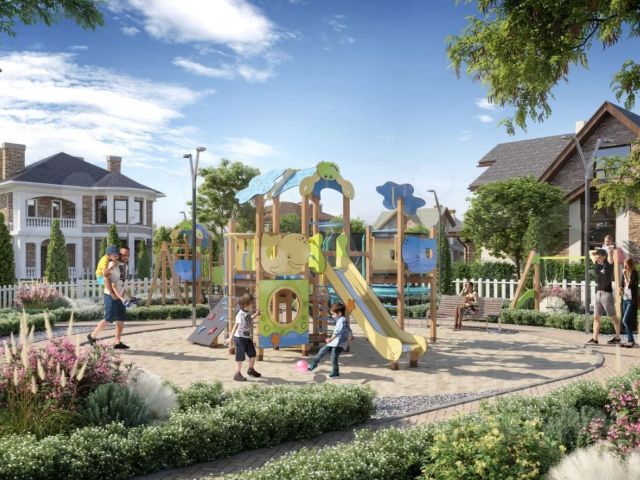 Для детей и спорта: На территории поселка оборудован современный детский городок, где ваши дети смогут весело и безопасно проводить время на свежем воздухе. Для любителей активного отдыха есть минифутбольное поле.