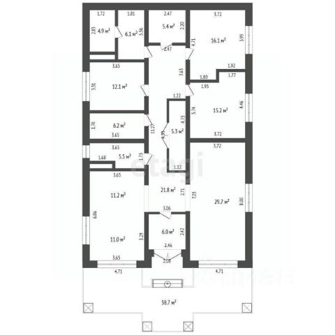 Цокольный этаж с высотой потолков 2,53 м включает в себя помещения под хозяйственную часть для коммуникаций, а также 3 свободных помещения площадью 38,2 кв.м, 14,1 кв.м и 22,8 кв.м, которые можно использовать под спортзал, бильярдную игровые. Помещения с окнами.