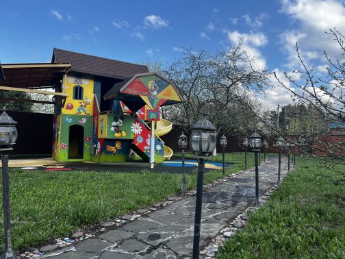 Дом расположен на участке 6 соток, правильной формы. Участок выравнен, посеян газон, стоянка для автомобилей. На участке есть солнечная полянка, которая идеально подходит для установки бассейна или детской площадки, зоны отдыха.