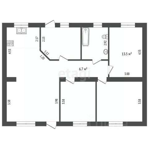 Центральные коммуникации: электричество 15 кВт, газ заведен в дом, водоснабжение заведено в дом