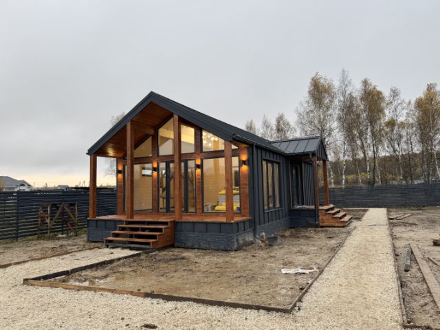 Предлагаем к продаже готовый дом в красивом закрытом поселке Салтыково парк у реки, находится в 50 км от Москвы. Это жилой дом с правом регистрации по месту жительства. Коммуникации: - Электричество 15 кВт, противопожарная проводка. Все автоматы, выключатели и розетки смонтированы, подключены и работают. - Артезианская скважина 50м. Фильтры воды на входе в дом (и грубой, и тонкой очистки). Трубы рехау. Бойлер на 80 литров, управляется вайфаем . - Cептик биo очистки, не требует обслуживания. - Батареи электрические, управляются вайфаем, температуру в доме можно регулировать удаленно. - Оптоволоконный интернет подключен. Удобная планировка с двумя спальнями, санузлом, гардеробной зоной и большой гостиной с выходом на крытую террасу. Технология строительства: - Дом "каркасный" с террасой, на сваях. - Утепление для круглогодичного проживания - пол 200мм, потолок 200мм, стены 150мм. - Кровля фальцевая толщиной 0.5мм, такой же материал на фасадах. Высота потолков 3м.-4.4м. - Вся доска обработана огне-био защитой, а пространство пола уложено защитной сеткой от грызунов. - Полы по дому - ламинат. Кварцвинил в санузле. Отделка стен- имитация бруса (широкая, эффектная 150мм.). Участок выровнен, предусмотрено благоустройство. Рядом лес и река. Видеонаблюдение на въезде в поселок и на его территории. Въезд в поселок через шлагбаум, открывается через приложение на телефоне. Подъезд с Каширского и Рязанского шоссе за 45 минут от Москвы. Развитая инфраструктура - рядом есть магазины, ПВЗ WB и Ozon, кафе, аптеки, в радиусе 15-20 минут на машине есть школа, гимназия и детский сад. Звоните! Рад буду ответить на Ваши вопросы и договоримся о просмотре!