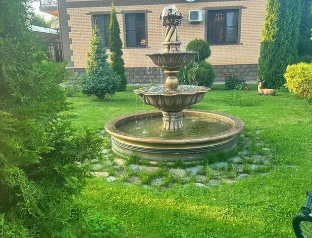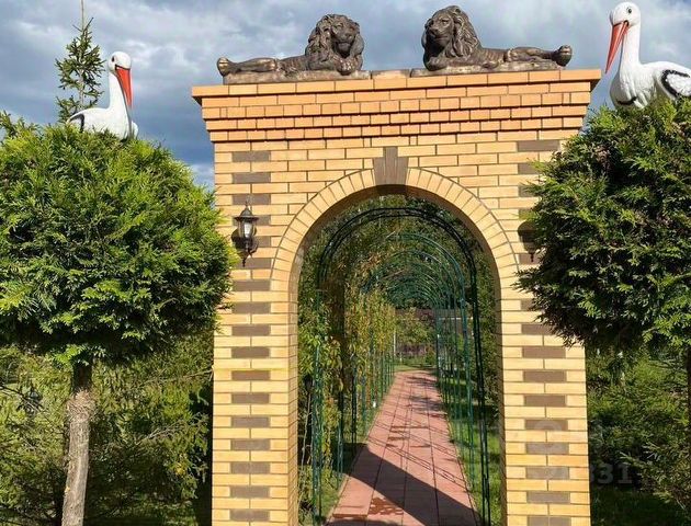 На участке сделан ландшафтный дизайн с дорожками, зонами отдыха.