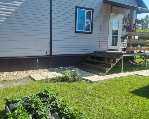 Зона барбекю, качели из бревна ручной работы. Хозблок и вольер для собаки с утепленной будкой.