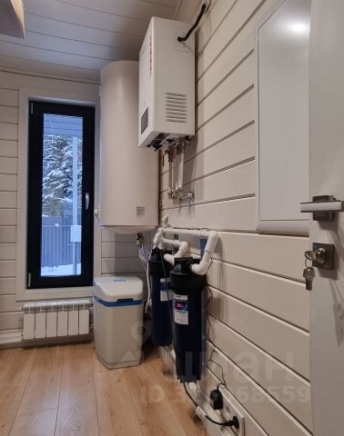 На полу ламинат 12мм, 33 класс, МДФ плинтус, имитация бруса с покраской тикурилла. Санузел частично в плитке с унитазом, ванной, раковиной, душевой кабиной и мебелью для ванной комнаты. Отопление от электрического котла + во всех помещениях, кроме бойлерной установлен теплый пол. Во всех помещениях установлены светильники, так же на фасаде дома и на террасах, розетки и выключатели, датчики теплого пола. Установлены двери, система вентиляции во всем доме.