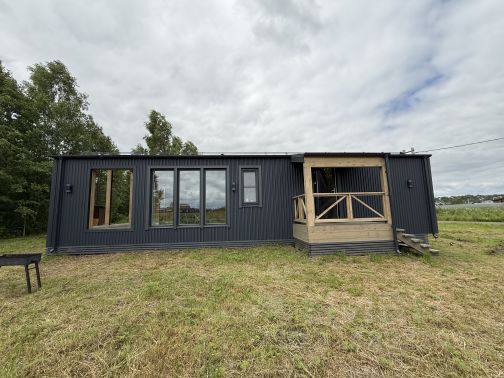 * Снаружи дом отделан деревом и профлистом цвета серый графит. Внутренняя отделка массив дерева.