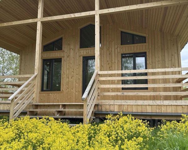 - гостиная с высокими потолками (7 м), вторым светом и панорамными окнами с видом на сосновый лес наполнят пространство воздухом