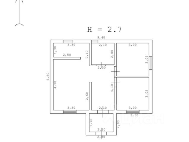 Веранда, кухня-коридор, две жилые комнаты на комнаты на первом этаже и одна комната на втором.