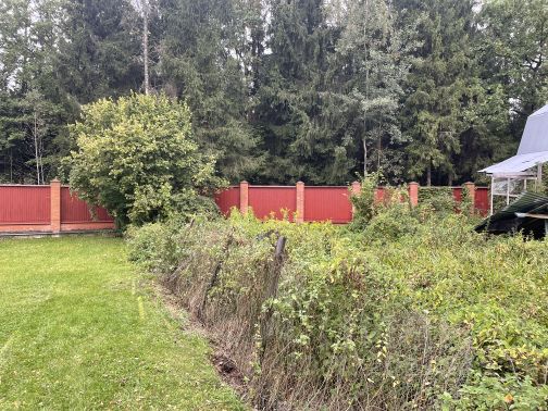 В деревне проходят все центральные коммуникации: вода, канализация, магистральный газ, скоростной интернет. Прямоугольная форма участка упрощает застройку и открывает интересные возможности для организации ландшафта с существующим садом.