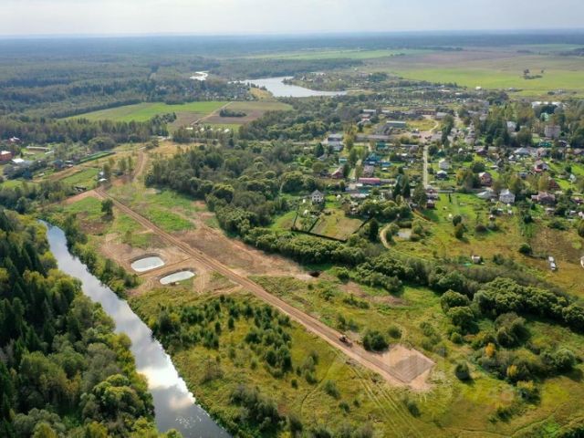участок рядом с дорогой и водоемом