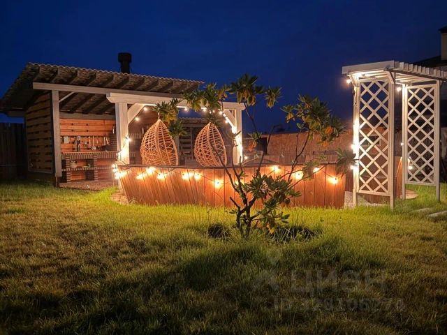 Вечером участок преображается: мягкий свет фонарей, аромат дерева и ощущение полной тишины.