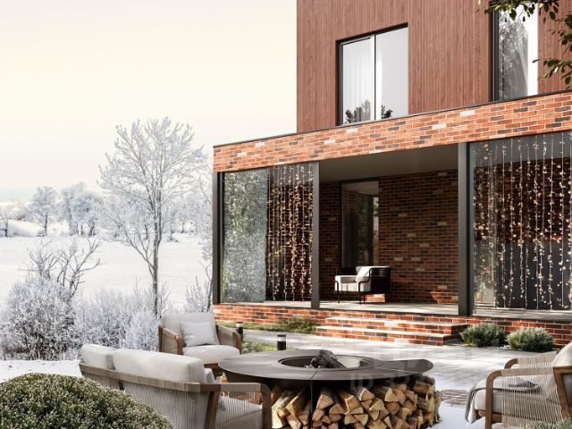 Парковка на 3 машины и дорожки из брусчатки ПОДОГРЕВАЮТСЯ (лопата зимой не понадобится). Зона барбекю и отмостка отделаны брусчаткой.